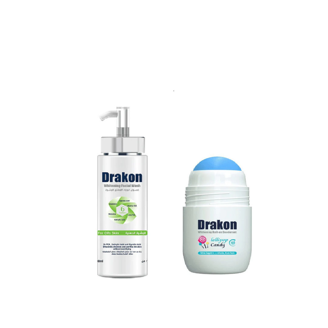 Drakon Ultimate Skin Care Pack for Oily Skin(Drakon® Whitening Roll-on Deodorant – Lollipop Candy&Drakon® Whitening Eye Contour Concealer(Medium Shade) with SPF15+&Drakon® Sunscreen Gel-Cream SPF 50+/ 60ML&Drakon® Whitening Facial Cleanser For Oily & Combined Skin pump)
