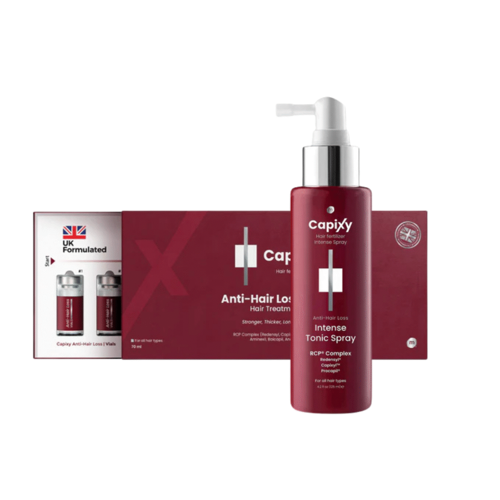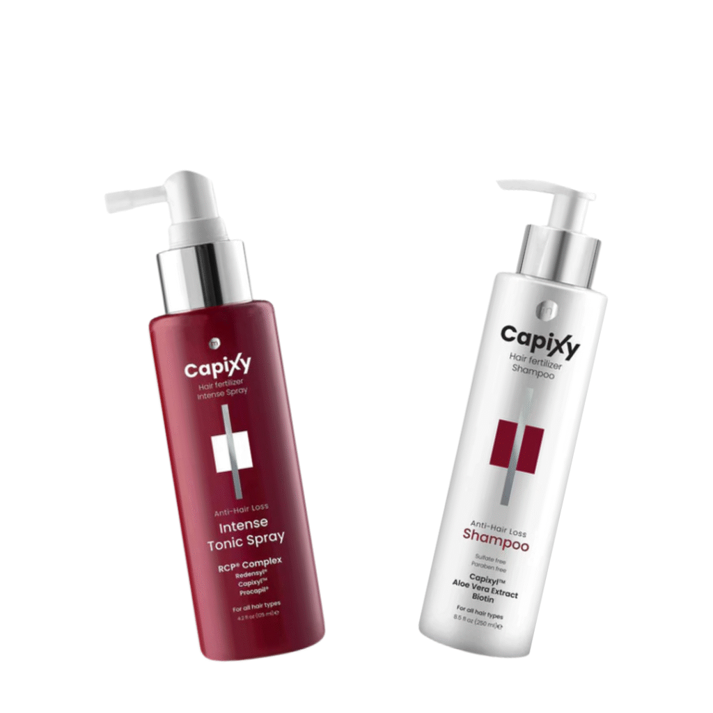 م1نتجات Capixy توفر حلولًا متكاملة لمشكلة تساقط الشعر، تبدأ بـ Capixy Intense Tonic Spray الذي يعمل على تقوية البصيلات وتحفيز النمو بفضل مركب RCP، مع نتائج واضحة خلال 6 أسابيع، ويُستخدم يوميًا. يليه Capixy Anti-Hair Loss Shampoo الخالي من السلفات والبارابين، والمدعّم بتقنية Capixyl™، ليساعد على تنظيم إفراز الدهون وتقوية الشعر من الجذور، مما يقلل التساقط الناتج عن التوتر والعوامل الوراثية. ولعناية إضافية وتصفيف فعال، يأتي