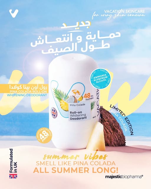 Be the first to review “فاكيشين رول اون مزيل العرق لتفتيح البشرة برائحة بيناكولادا 50 مل – Vacation”
