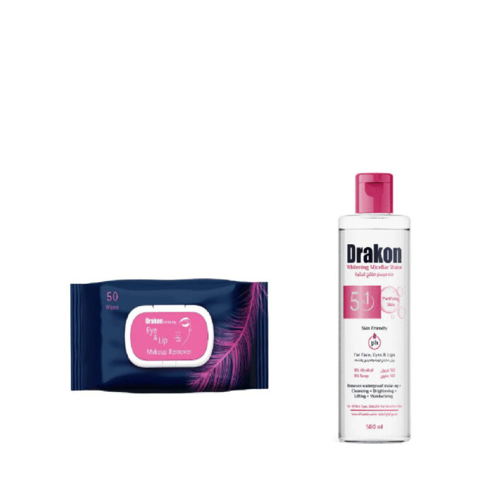 Drakon Whitening Beauty Bundle(Drakon® Whitening Eye& Lip Wipes Makeup Remover &Drakon® Whitening Micellar Water 500 ML)